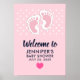 Poster Chá de fraldas de Pegadas de Bebê Rosa