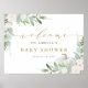 Bem-vindo a convidados para o seu evento com este sinal de boas-vindas personalizável ao chá de fraldas. Apresenta abóbora branca de cor aquosa, folhas de eucalipto, flores brancas e outros acentos verdes. Personalize este sinal de boas-vindas ao chá de fraldas verde adicionando seus próprios detalhes. Este sinal de boas-vindas de abóbora é perfeito para chás de fraldas de outono e é uma chá de fraldas de Menina.
