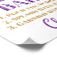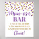 Bar de sinal de poster Momosa para chá de fraldas em padrão branco, roxo escuro e confete ouro com letra de estilo manuscrita. Perfeito para chás de fraldas e aspersão de bebês.