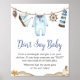 Torne o seu evento especial com este Chá de fraldas Clothesline com a nossa bela e adorável impressão Don't Say Baby Sign com um tema de Chá de fraldas Náutico adorável. Baixe, personalize e crie memórias duradouras com este toque perfeito para sua celebração alegre! BS1067 B