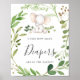 Dê aos seus hóspedes uma direção encantadora com nosso elefante adivinhem quantas fraldas assinam, com cor d'água verde eucalipto garland e uma elegante fonte de estilo manuscrito.