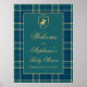 Um poster de sinal de boas-vindas de pré-disquete e clássico do chá de fraldas com elementos equestres e xadrezes em marinho e verde de caçador com sotaques dourados. Uma crista de nome familiar com uma silhueta de monograma e jogador de polo com cavalo enfeita o topo e o padrão tartano adiciona um toque de eterno. Perfeito para um chá de fraldas tematizado de "Old Money" com um sentimento clássico, vintage e luxuoso. Se você gosta de vovô core, estilo vintage este é um tema de chá de fraldas excelente. Personalize este modelo poster de sinal de boas-vindas de chá de fraldas editável com os seus próprios detalhes de evento. Coloque-o no seu quadro favorito e exiba-o no seu chá de fraldas.