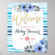 Poster Chá de fraldas Floral Azul Floral Bem-vindo