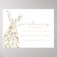 Celebre o seu bebê em breve nesta primavera com a nossa elegante, simples e moderna design 'Alguinada'. Esta design horizontal apresenta uma adorável paleta de cores neutra, com um coelho doce e uma tipografia de ouro. Este produto é perfeito para o seu sinal de boas-vindas ao chá de fraldas - cumprimente os seus convidados com um sinal de recepção e sobre temas.
