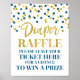 Sinal de rifa de fralda para chá de fraldas em um padrão de confete azul e ouro marinho.