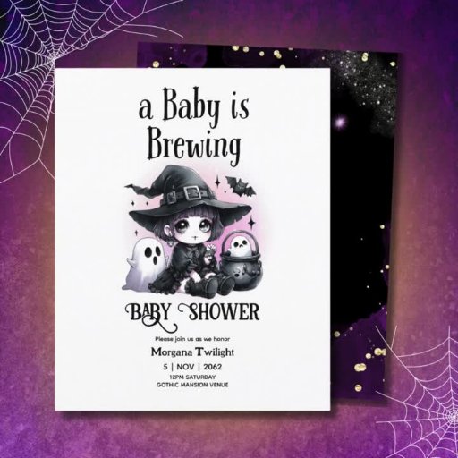 Item de evento de chá de fraldas super fofo e divertido. Exibir a coleção de cheios para itens correspondentes. Tema de cor roxa e preta. Incluídos no conjunto estão a ser criados bebês, pequenos boos a caminho, convites, cartões de rifa de fralda, caixas de favor, bolsas porreiras, cartazes, adesivos, camisetas, cartões de agradecimento e muito mais. Os temas incluem: bruxas, fantasmas, morcegos, corvos, mísseis, neutros em termos de gênero e o tema do bebê e da menina. Muito para escolher!