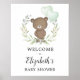 Poster Chá de fraldas neutro de Urso Verde Bem-vindo