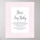 Poster Chá de fraldas Rosa Clássico Gingham Não Diga Bebê