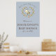 O sinal de poster de boas-vindas do chá de fraldas cômico pode ser usado para borras de ou de solteiro, apresenta belas abelhas e flores com texto personalizável sobre fundo azul pálido.