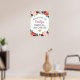Cartaz de boas-vindas para chá de noiva / casamento apresenta texto estiloso emoldurado por uma linda coroa rústica de flores de aquarela de outono, incluindo rosas, dálias, flores de peônia e folhagens, em uma paleta de verão ou outono deslumbrante de vermelho borgonha, amarelo dourado, laranja pêssego, rosa corado e tons de verde. Inclui um acento de coração dourado. Personalize com o nome da noiva em roteiro vermelho borgonha.