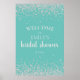 Placa de boas-vindas para chá de noiva elegante em azul turquesa com confetes de diamante prateados brilhantes. Entre em contato conosco para obter ajuda com personalização ou produtos correspondentes.