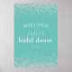 Placa de boas-vindas de chá de noiva elegante em turquesa com confetes de diamante prateado brilhante. Entre em contato conosco para obter ajuda com personalização ou produtos correspondentes.