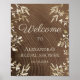 Placa de boas-vindas de chá de noiva rústica, elegante, com flores douradas e madeira. Perfeito para casamentos modernos de inverno.