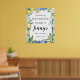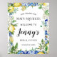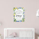O sinal de boas-vindas perfeito para um chá de panela com tema de limão. Limões aninhados em flores brancas e folhagens verdes estão entrelaçados com azulejos azuis para criar uma moldura única.
