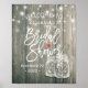 Modelos de Poster de Sinais de Boas-vindas do chá de panela - Script Elegante, Mason Jar e String Lights no fundo da madeira rustica. Um Design perfeito para o seu grande dia. Todo estilo de texto, cores, tamanhos podem ser modificados para ajustado das suas necessidades!