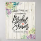 Modelos Poster de Sinais de Boas-vindas do chá de panela - Plantas Suculentes de Aquarela Elegante no fundo de madeira rustica branca. Um Design Perfeito Para O Seu Grande Dia! Todo Estilo De Texto, Cores, Tamanhos Podem Ser Modificados Para Ajustado Das Suas Necessidades.