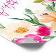 Um sinal de cartas e presentes com a ilustração Elegante brilhante e ousada das flores primavera de verão, com bonito símbolo de chá de panela de flores e pincéis selvagens de grande porte, com uma tipografia caligráfica moderna, com néon brilhante, cor-de-rosa, laranja, verde e amarelo.