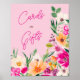 Um sinal de cartas e presentes com a ilustração Elegante, brilhante e ousada, das flores primavera de verão, com bonito símbolo de chá de panela de flores e pincéis selvagens de grande porte, com uma tipografia caligráfica moderna, com néon brilhante, cor-de-rosa, laranja, verde e amarela, em cor-de-rosa retrógrado