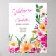 Bem-vindos aos seus hóspedes em estilo com a nossa ilustração Elegante, brilhante e ousada das flores primavera de verão, com bonito símbolo de chá de panela de flores e pincéis selvagens, de tamanho enorme, com uma tipografia caligráfica moderna, com flores brilhantes, cor-de-rosa-neon, laranja, verde e amarelas.