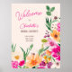 Bem-vindos aos seus hóspedes em estilo com a nossa ilustração Elegante, brilhante e ousada das flores primavera de verão, com bonito e sobredimensionada placa de chá de panela com uma tipografia caligráfica moderna, com néon brilhante, cor-de-rosa, laranja, verde e amarelo, em bege de marfim