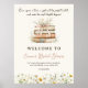 Coloque a cena para um encantador chá de panela temático do livro de histórias com este sinal de boas-vindas inspirado na vintage. Com uma pilha de livros antigos amarrados com fita, flores silvestres delicadas e caligrafia elegante, esta design simboliza lindamente o início do próximo capítulo da noiva. Perfeito para chás de panela literários, rústicos, jardins ou country, este cartaz acrescenta um toque eterno e romântico à celebração.