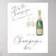 Garrafa de champanhe elegante com dois taços de champanhe e texto "Pop do champanhe. Ela está mudando o nome."