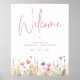 Um poster de boas-vindas de um Chá de panela bonito perfeito para um primavera ou chá de panela de verão com um pântano inferior de flores silvestres e erva aquáticas e "bem-vindo" no estilo manuscrito rosa e cor-de-rosa poeirento. Personalize com seus detalhes.
