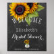 Chá de panela de sinal de boas-vindas, elegante, modelo de queda,, na placa de poster de cinza escura, que inclui cachos de girassóis de ouro amarelo e jarro de pedras. Você pode personalizá-lo alterando ainda mais as fontes e as cores das letras. — Ideal para um jardim de na moda chic | outono de Verão | festa de chá de panela do quintal.