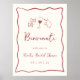 Este belo design de chá de panela de inspiração italiana apresenta letras cursivas estilo manuscrito acentuadas com uma borda ondulada de fita escrivora em vermelho de tomate. Ilustrações desenhadas à mão de massas alimentícias com arco, vinho e um limão siciliano completam a design de um olhar de verão na costa de Amalfi. Este elegante sinal de boas-vindas do chá de panela mediterrânico apresenta quatro campos de texto personalizados; mostrado com "Benvenuti" (Italiano de boas-vindas) com seu nome e data de evento.