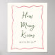 Este belo design de inspiração italiana apresenta uma letra cursiva estilo manuscrito verde, realçada com uma borda ondulada de fita escrivável, em cor rosa, para um visual da Costa Amalfi no Verão. Este elegante sinal de jogo de adivinhação do chá de panela mediterrânico apresenta a frase "quantos beijos há no frasco?" Pronto para enquadrar; escolha impressão e envio profissionais ou a opção de download instantâneo para impressão local ou em casa. Par com nossos cartões de jogo de adivinhação de chocolate.