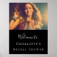 Um poster de boas-vindas para um Chá de panela. Personalize e adicione uma foto, um nome. Um fundo preto clássico, texto branco.
