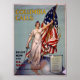 Um poster da Primeira Guerra Mundial mostrando Columbia segurando uma bandeira e uma espada enquanto parado em cima de um globo criado por Vincent Aderente.