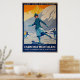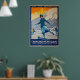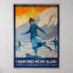 Poster vintage das primeiras Olimpiadas de inverno realizadas em Chamonix, França, em 1924, com o vizinho Mont Blanc a servir de local para os acontecimentos alpinos.