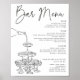 Add a touch of timeless elegance to your celebration with this black and white champagne tower bar menu sign, featuring a stylish illustration of cascading champagne flowing through a stacked flute tower. Designed in a classic minimalist aesthetic, this 8x10 printable sign is perfect for weddings, bridal showers, engagement parties, and upscale events. Easily personalize with your drink menu and frame for a polished, professional bar display.