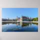 Vista do Chateau de Chantilly do Jardim do Notre com uma fonte em primeiro plano e reflexo do castelo numa lagoa - França