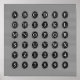 Impressão de Chave de Máquina de Digitalização Quadrada exibindo as teclas alfabeto e número. Ligeiramente angustiado em escala de cinza, exibindo tanto uma borda moderna quanto a antiga.