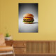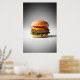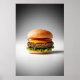 Um cheeseburger que parece estar envolto com luz branca. O cheeseburger parece delicioso para comer como uma refeição. Pode ser um design excelente para usar na sua poster, especialmente se você gosta de comer cheeseburgers também!