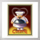 Poster de comida de estilo retrorreflector com chef segurando uma bandeja de serviço
