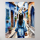Este impressão de arte apresenta um retrato aquoso de uma mulher caminhando pelo beco através de Chefchaouen, Marrocos.