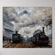 A "chegada do trem da Normandia" é um retrato dinâmico do progresso industrial e da modernidade, captando a energia movimentada de uma estação de trem. A cena mostra a chegada de um trem a vapor no Gare Santo-Lazare, em Paris. A composição é preenchida com o movimento e a vitalidade da estação, com vapor e fumaça ondulando a plataforma, criando uma atmosfera nebulosa. Escuros soltos e paleta vívida de cores transmitem a impressão do momento, enfatizando a interação entre luz, vapor e aço. Através dessa pintura, O poder transformador da tecnologia e a paisagem em mudança da vida urbana no final do século 19 convida os espectadores a experimentar o entusiasmo e o dinamismo da era industrial.