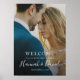 Este simples poster de boas-vindas do janto de ensaio de casamento, apresenta a sua foto favorita e o seu texto branco, incluindo os seus primeiros nomes numa escrita meticulosa. Você pode mudar a fonte e o texto para se adequar ao seu estilo. Dependendo da cor da sua foto, você pode preferir texto preto - nesse caso, por favor verifique nossa coleção de sinais de boas-vindas para este design em preto!