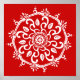 Esta mandala branca senta-se sobre um fundo vermelho brilhante. A cor é energética e quente. Parte da coleção Payon Mandala.