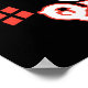 Confira Chibi Harley Quinn enquanto ela faz as divisões em frente a um pano de fundo de diamante de bolinhas vermelha com seu nome escrito em volta dela.