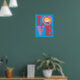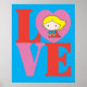 Veja o dentro Chibi Supergirl de um coração de ping que representa o "O" neste logotipo empilhado de "LOVE".