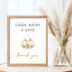 Elegant and boho chic twin baby shower sign featuring white pumpkins, golden stars, and autumn leaves — perfect for directing guests to leave their cards, books, and gifts.