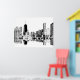 Este trabalho de arte apresenta o horizonte de Chicago, Illinois a tinta preta.