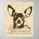 Meu sol não vem dos céus, vem do amor no poema dos olhos do meu cachorro. Chihuahua amantes e donos. A raça de cachorro Chihuahua encara desenho gráfico como um vetor com corações de pata-impressão. Numa cor castanha escura e vermelha escura.