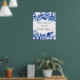 Poster Chinoiserie Azul Branco Bem-vindo Pássaro Folhagem