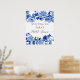 "Placa de Chá de Panela de Noiva em Azul e Branco Chinoiserie." Desenho em estilo Chinoiserie chinês em azul-marinho, azul e branco tem interpretações estilizadas de flores, folhagens, galhos de árvores e um pássaro canoro que enquadra o texto para dar as boas-vindas aos seus convidados para o Chá de Panela da noiva. A obra de arte foi pintada por Audrey Jeanne Roberts, uma artista e designer licenciada internacionalmente, direitos autorais reservados.