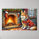 Poster Chinook Sitting by Fireplace with Christmas Lights